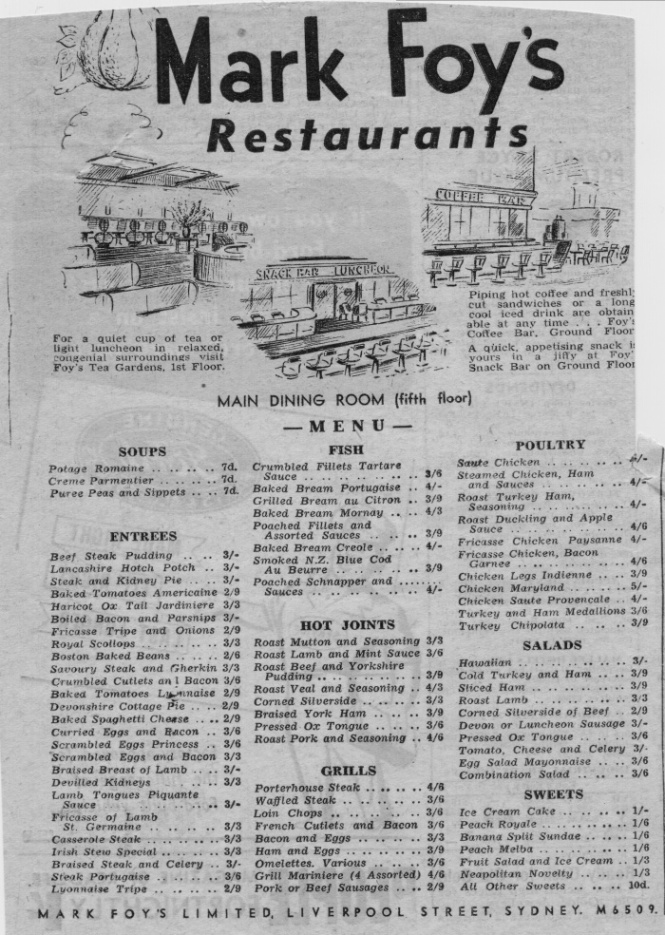 Menu of 1971 from Australia sent by Bruce Berckelman
