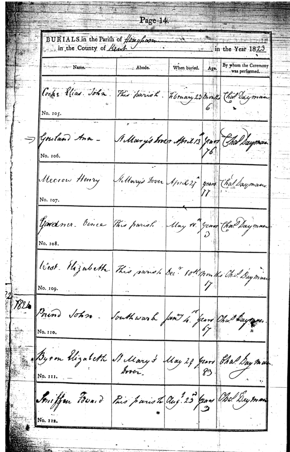 The following burials were recorded at St Lawrence’s, Hougham, a village near Dover: