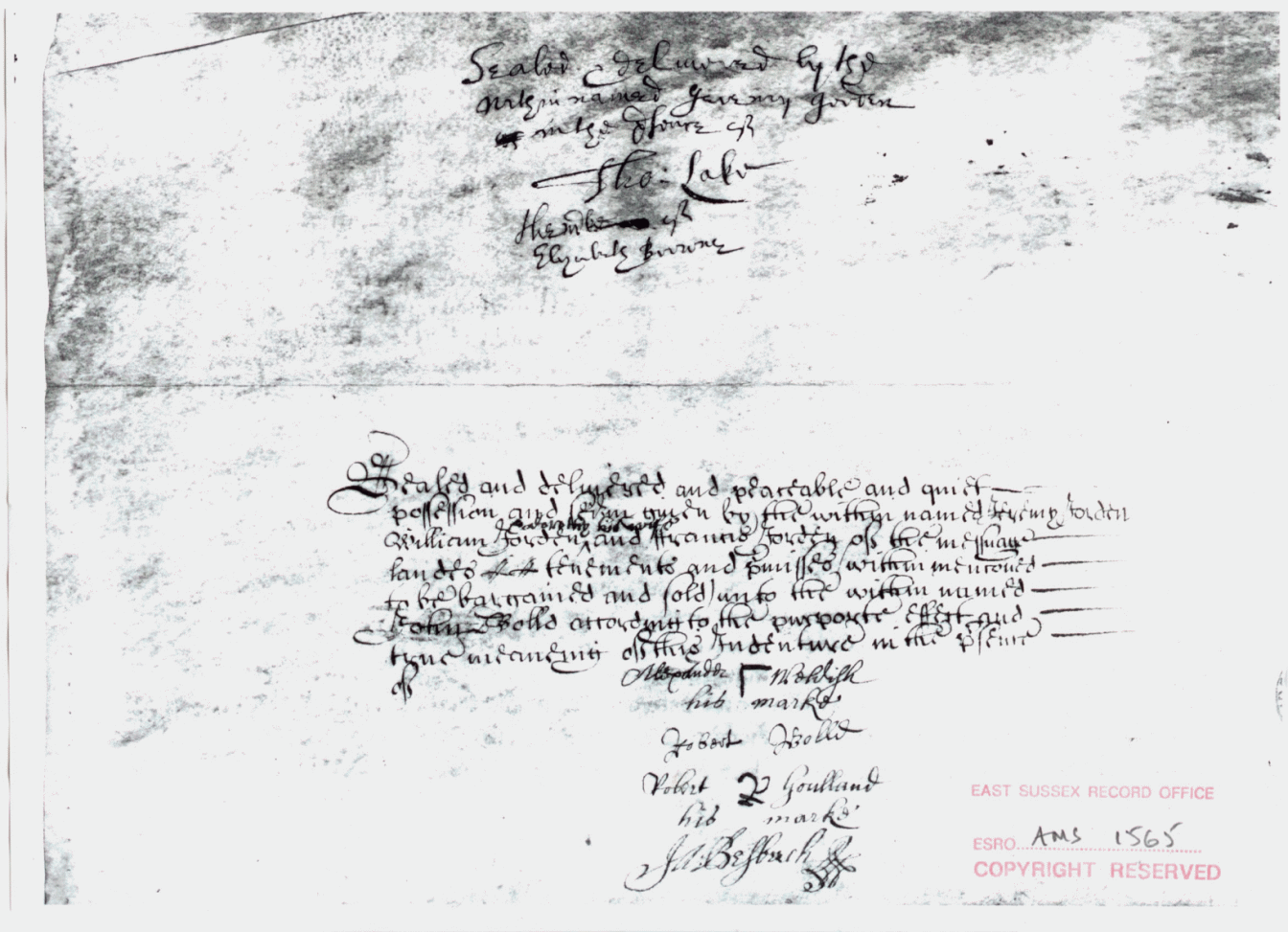 Relating to the same general area as the above, we have obtained a conveyance of 1663 from the East Sussex Archives in Lewes, one of the witnesses being Robert Goulland [sic].