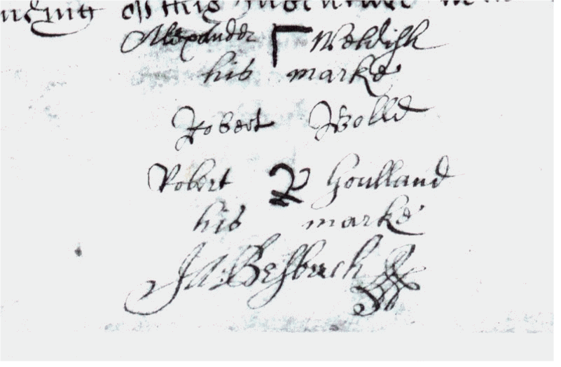 Note that Robert was illiterate, signing with his mark; and thus the spelling of the surname may be correct or not.